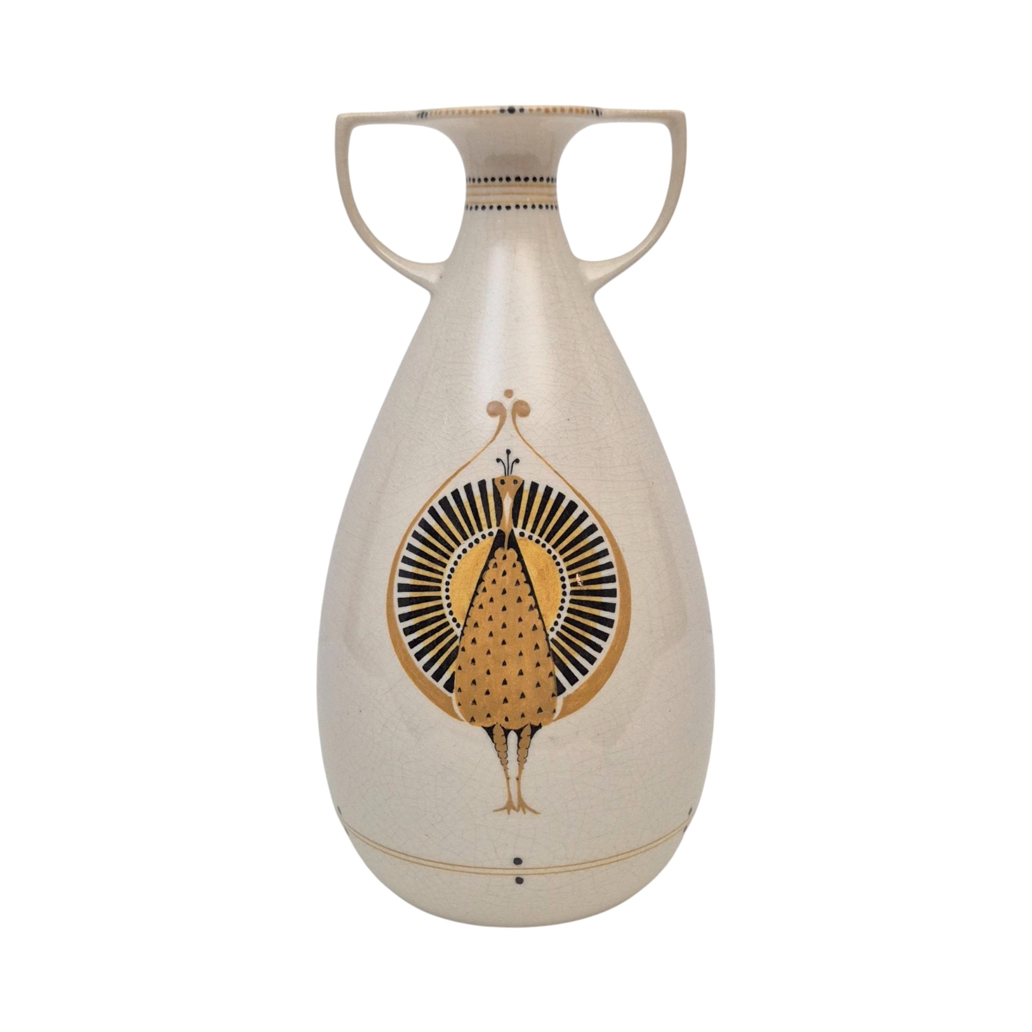 Aardewerk vaas met decor van pauw