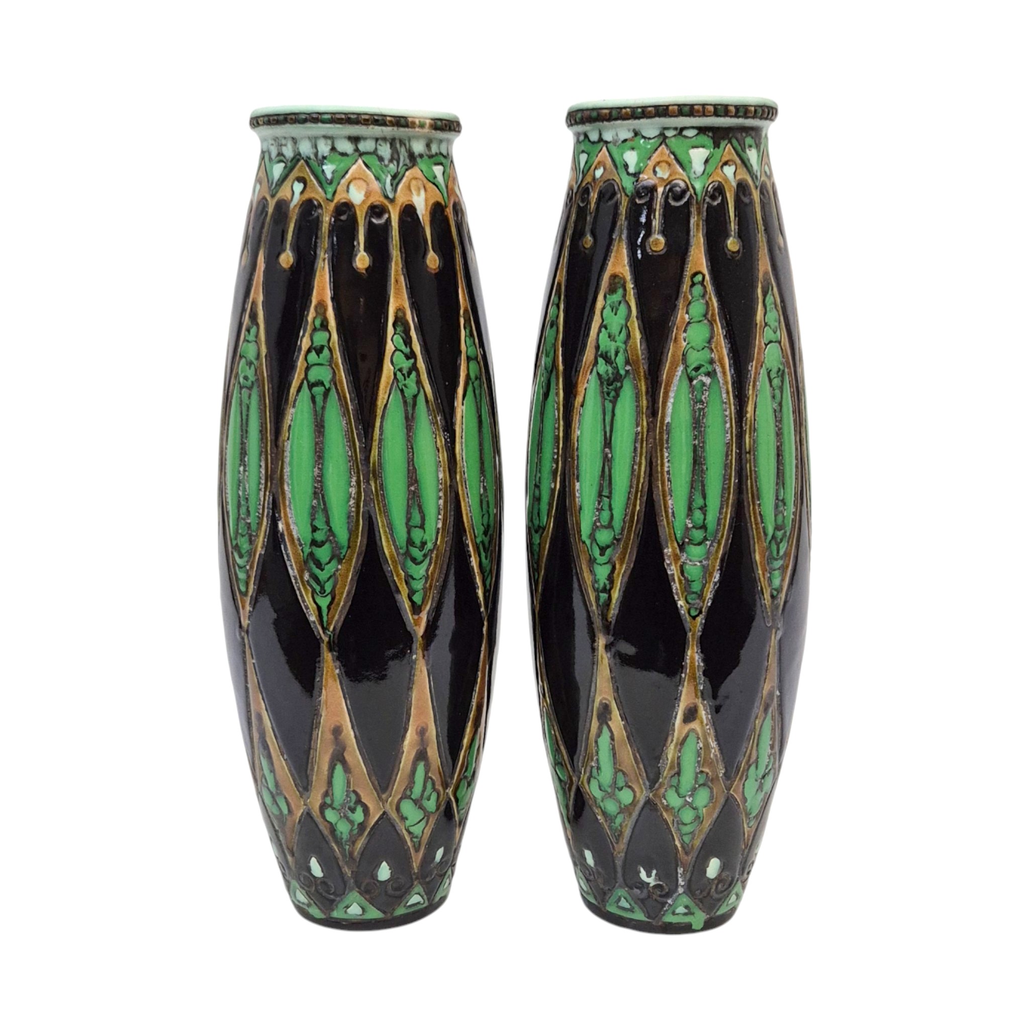 Stel aardewerk vazen met carduus decor